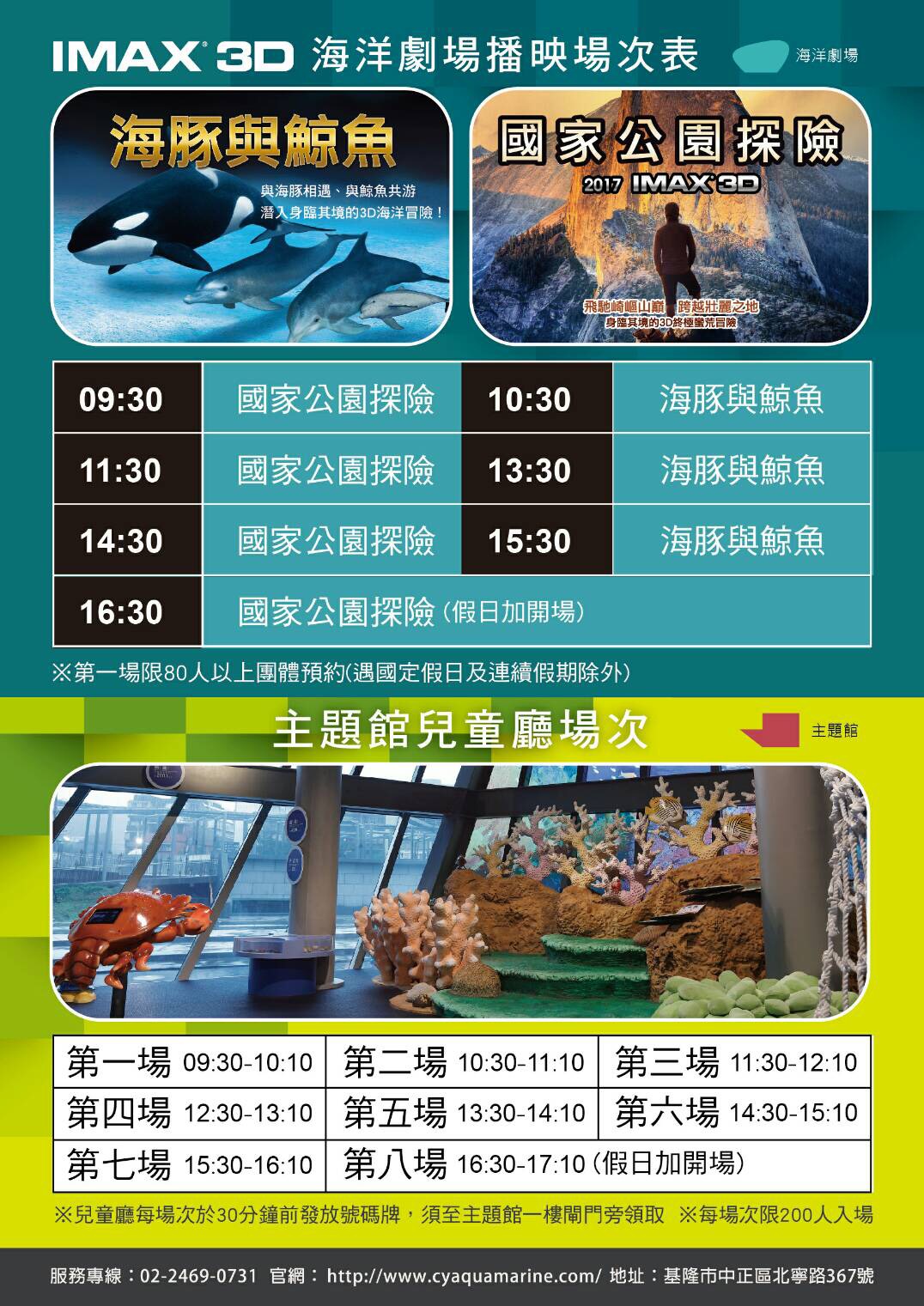 【公告】本館海洋劇場自110年3月14日起場次調整
