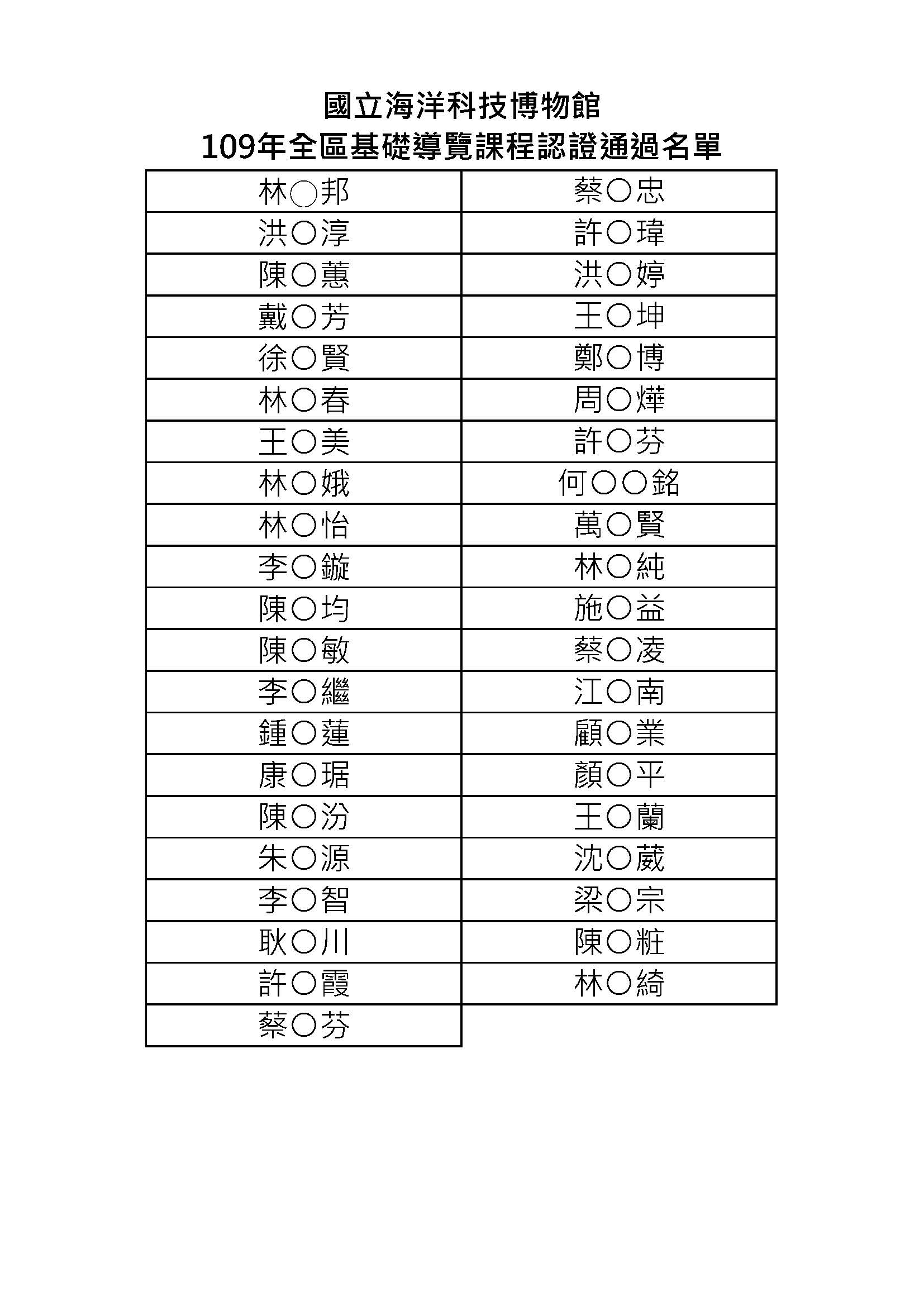 113學年度國立海洋科技博物館員工子女非營利幼兒園 招生錄取名單公告