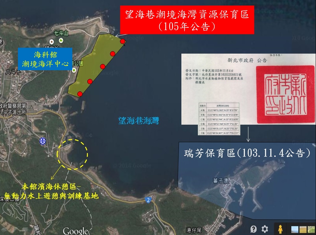 由於環境污染、不當捕撈、氣候變遷等因素,使得海洋生態環境不斷受到干擾與破壞。望海巷海灣位於本館潮境公園東側,面積廣達約250公頃,向來是漁業傳統作業場域,亦面臨上述因子的威脅。本館為了達成「永續海洋」之建館願景,讓國人能「親近海洋」、「認識海洋」、「善待海洋」,因此期待望海巷海灣能夠轉型成為一處國人從事健康、安全水域活動的親海海域,亦能協助地方發展特色海洋觀光產業。