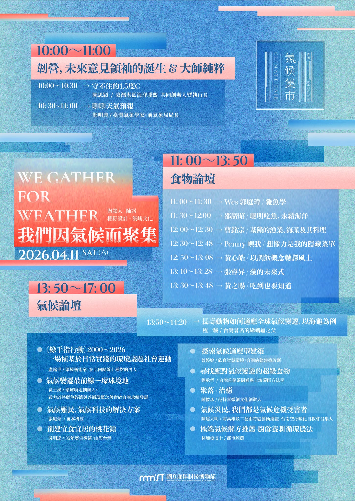 ✦我們想做的,其實很簡單:讓氣候這件事,離我們近一點。「氣候集市」是一個讓氣候、海洋、生活與永續相遇的地方。當越來越多人開始理解、開始討論、也開始做一點點改變,事情也許就會慢慢不一樣。誠摯邀請你,2026年4月11日,一起來海科館走走。