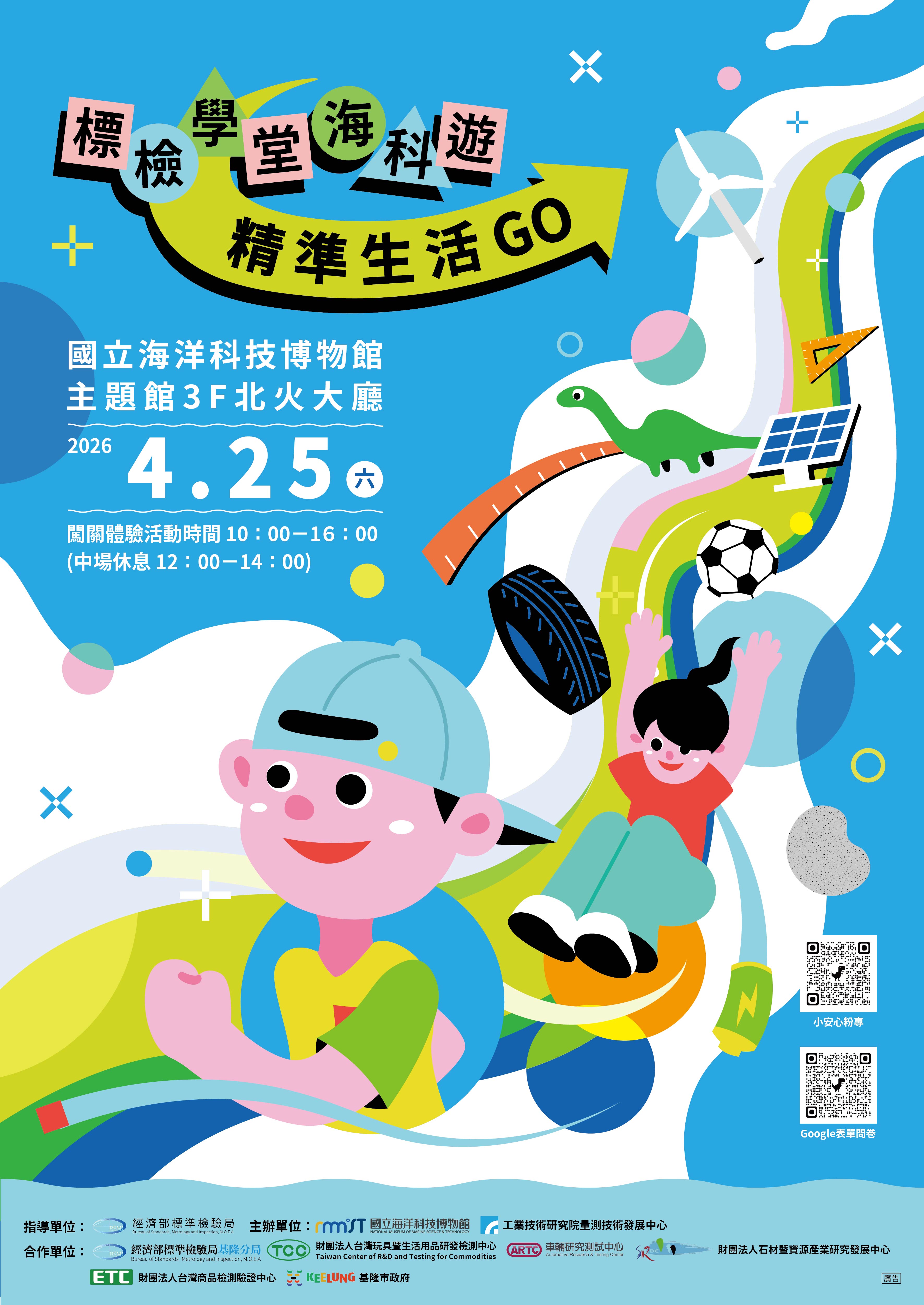 為提升民眾對日常商品安全、標示判讀與節能環保觀念的認識,國立海洋科技博物館攜手經濟部標準檢驗局,推出寓教於樂的親子體驗活動「標檢學堂海科遊・精準生活 GO」,透過多元互動關卡,帶領大小朋友在遊戲中學習,建立正確消費與安全意識。