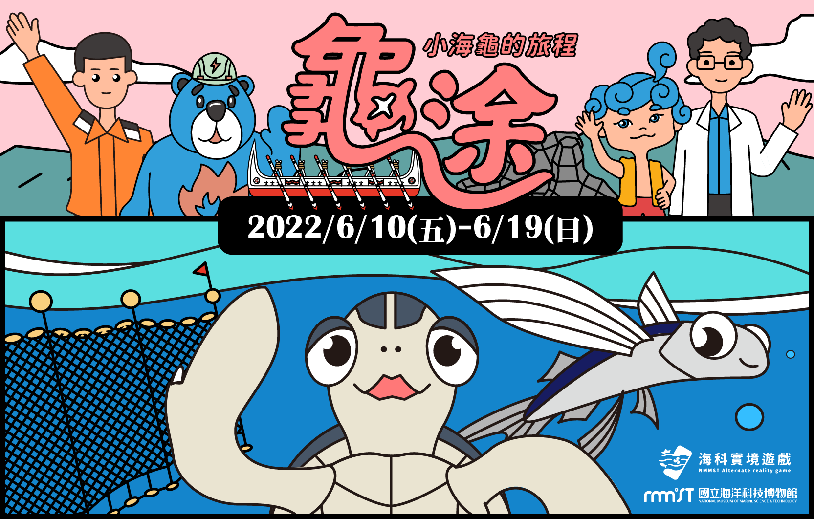 在臺灣某處海岸,一隻小海龜誕生了,破殼而出的他正在努力奔向大海,沒想到還沒展開大洋中的冒險就在沙岸上遇到了阻礙,邀請您一起來海科館動動腦,使用海科館有趣的展示品幫助海龜完成他的冒險旅程,如果您能順利協助小海龜和他的好夥伴們一起完成冒險旅程,解開所有龜途中的謎題,就能獲得海科博士準備給大家的禮物喲!
