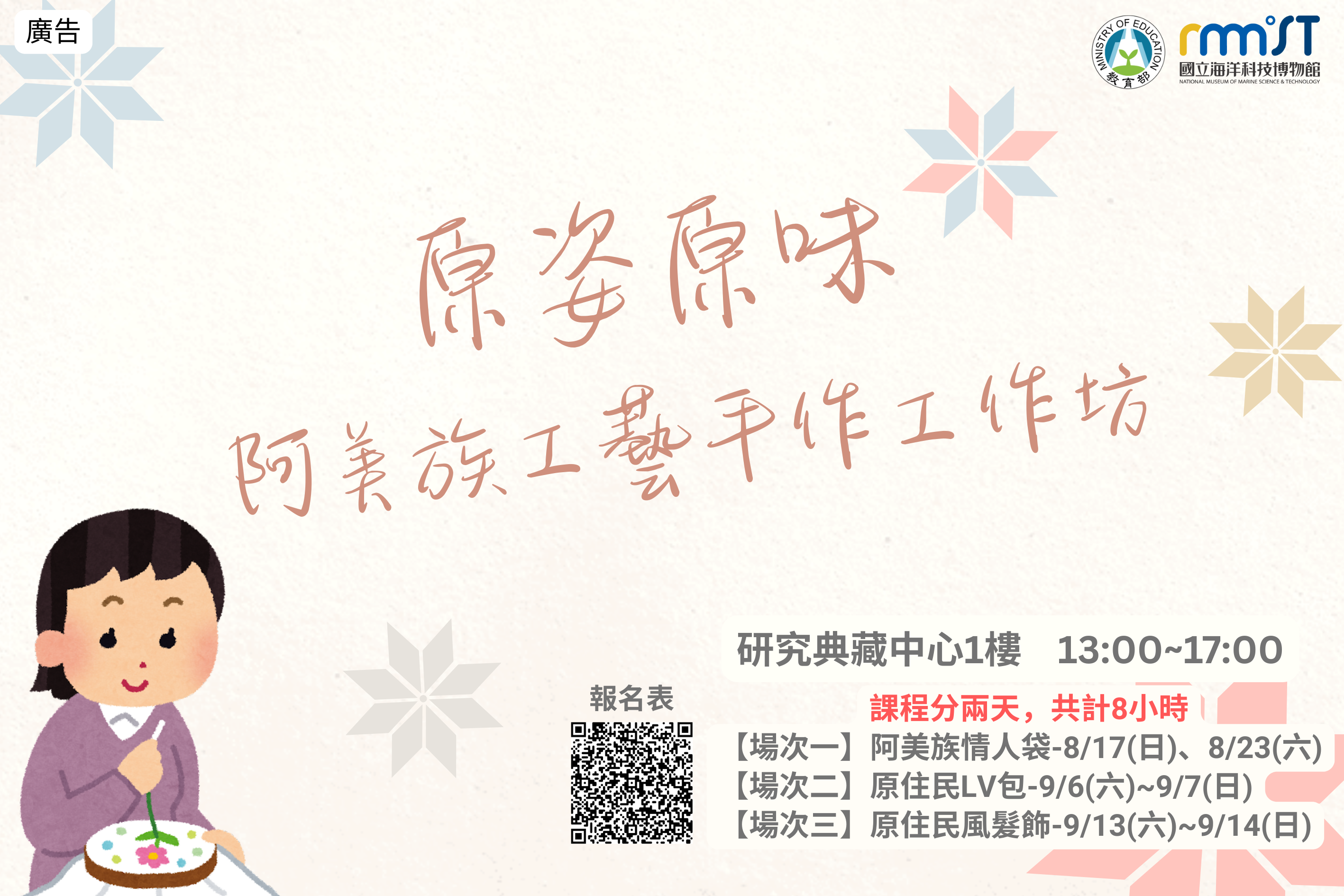 主辦單位:國立海洋科技博物館對 象:原住民或一般民眾,每梯次共20名 (以原住民 及 可以參加八小時課程者為優先)