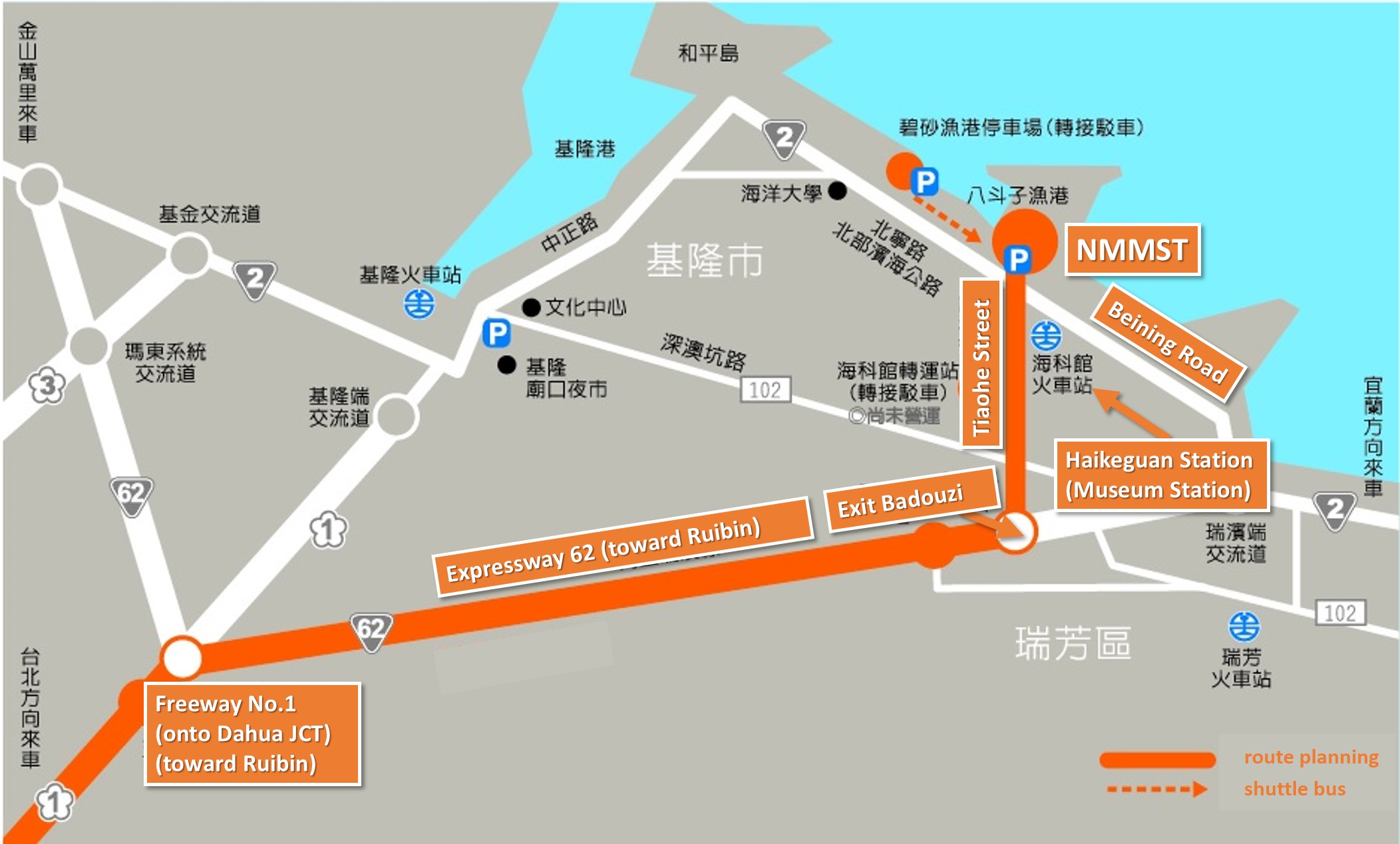 Keelung Station → Bus 103 → NMMST (Haikeguan / Bishuixiang) stop