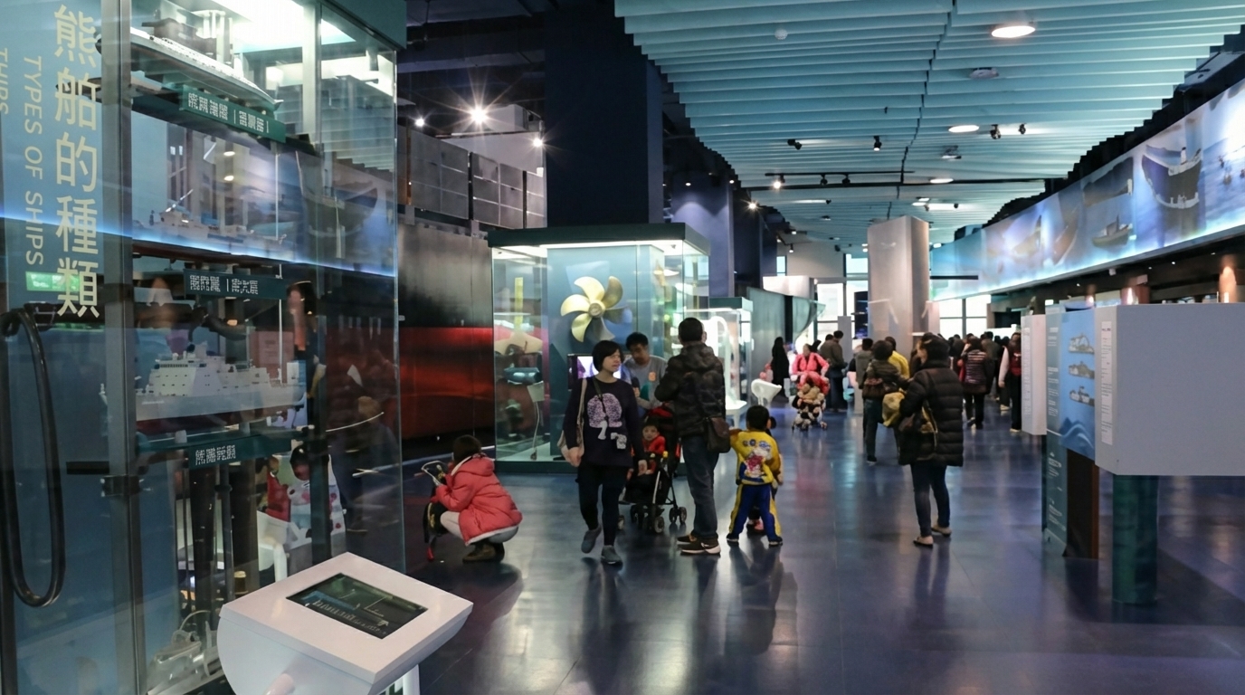 | The Gallery is constructed with metal, glass, water and other elements, coupled with projections in shades of aquamarine, creating a serene, hi-tech ambience. Its exhibits are centered on seven marine engineering topics, incorporating the three themes of "Understanding," "Development" and "Reflections and Prospects." Furthermore, a mockup of a 1/10 scale, 8,600 TEU container ship is featured in the center of the Gallery. Visitors will also learn about the domestic yacht construction process in Taiwan by strolling through a yacht's opulent living quarters and are sure to gain a deep sense of the importance of marine engineering technology development in Taiwan. | ||||||||